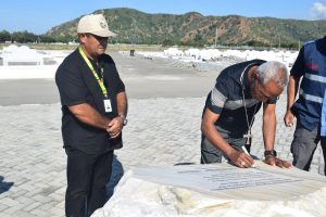 Liu tiha sorumutuk ho Xefi do Governo, Dom Norberto do Amaral hakat liu ba Esplanada Tasi tolu hodi assina placa de visitação Maktoban Sua Santidade Papa Francisco iha Timor-Leste.